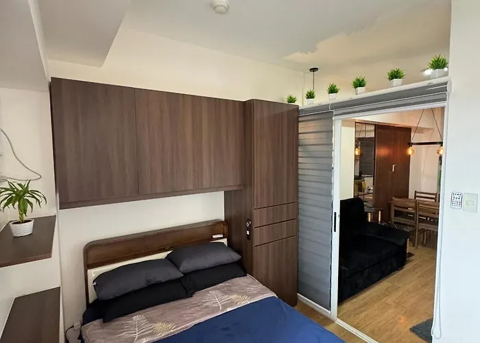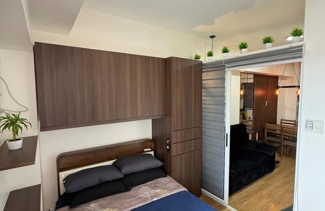 ベッドルーム1室のSmart Condo - Infina Near Araneta Cubao マニラ市から歩いてわずか5分離れたGood Shepherd Conventなどの市内の観光スポットへ行きやすいです。 この32m²のアパートには都市の景色を望むテラスがあります。